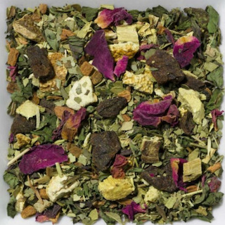 Le maté est une infusion des jeunes feuilles et des bourgeons de la plante mate. Ce mélange utilise principalement de la menthe poivrée, des pétales de rose, de la réglisse, des écorces d'agrumes et de la cannelle.