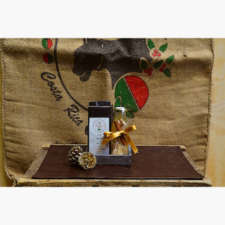 Cadeautje met 2 soorten fruitthee. Een siroopje voor bij de thee en enkele suikerstokjes.