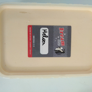 Ambachtelijk meloen ijs op basis van gepasteuriseerde koemelk en meloen.