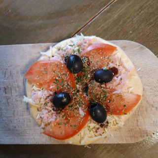 Ook dit is een familie recept van Aurea. Een combinatie van hesp, mozarella, tomaat,olijven, oregano, peterselie en curry ketchup.